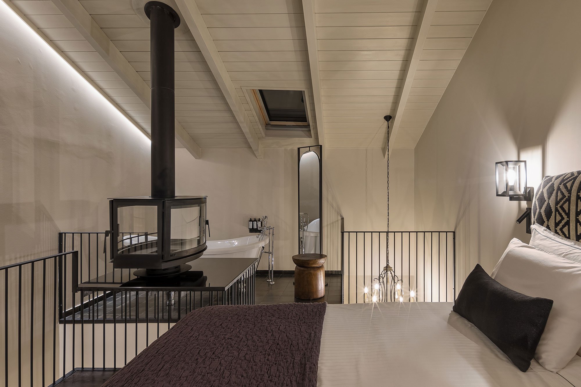 Loft 50 τ.μ. με ξεχωριστό υπνοδωμάτιο, καθιστικό, μπανιέρα και τζάκι — ιδανικό για άνετη και cozy διαμονή.