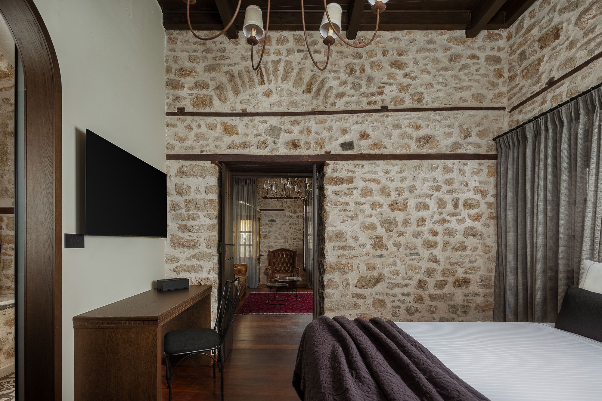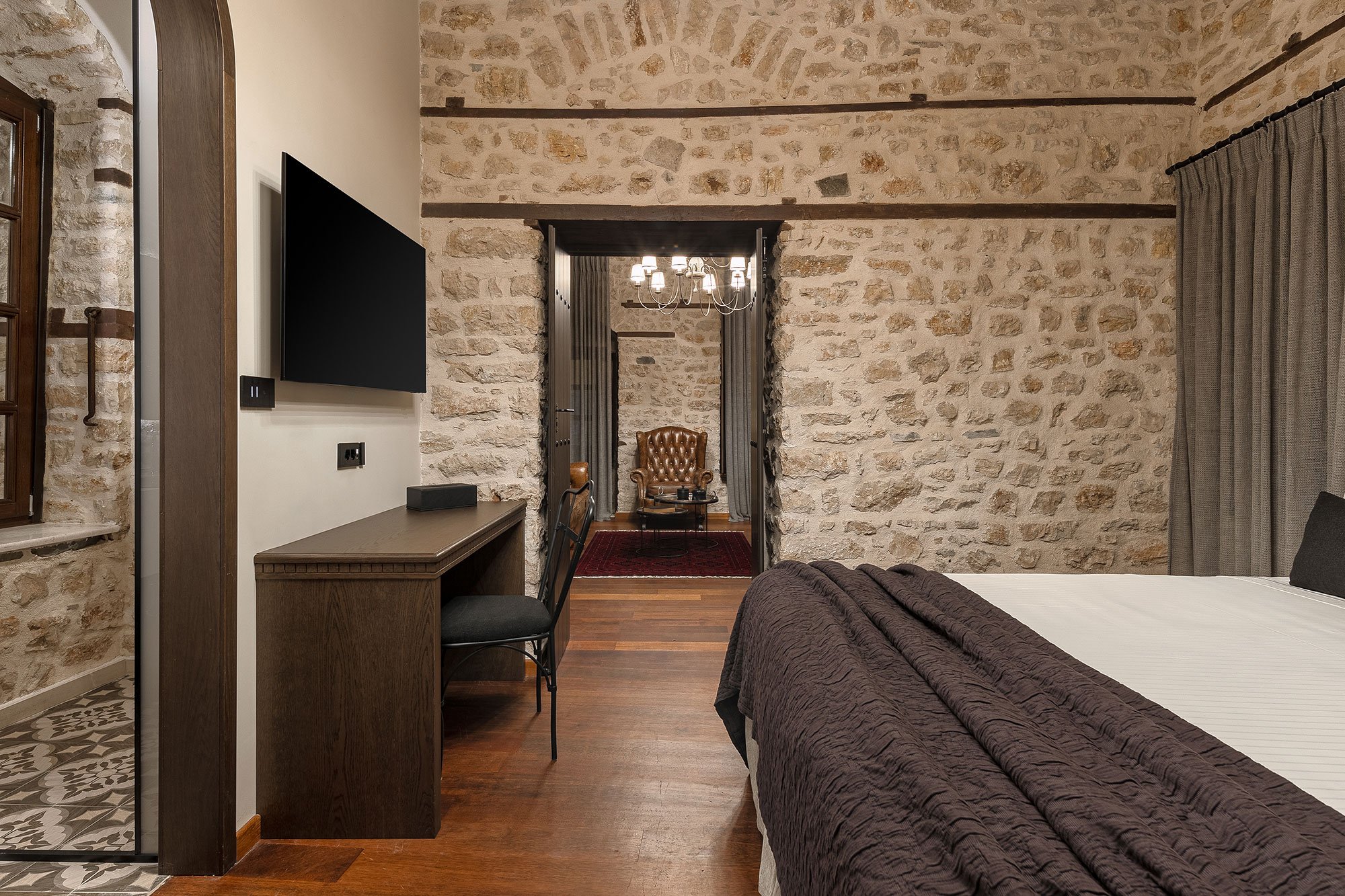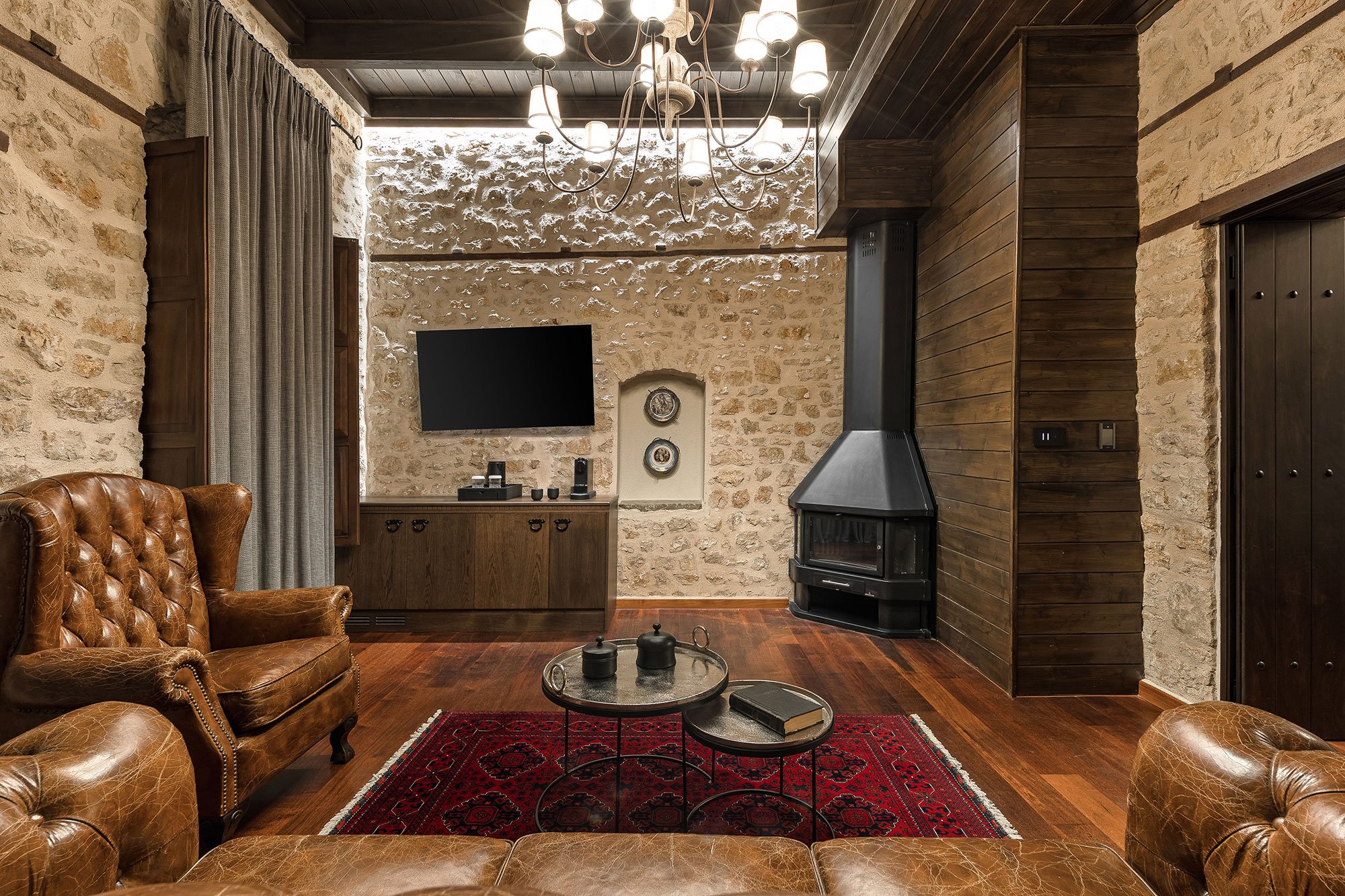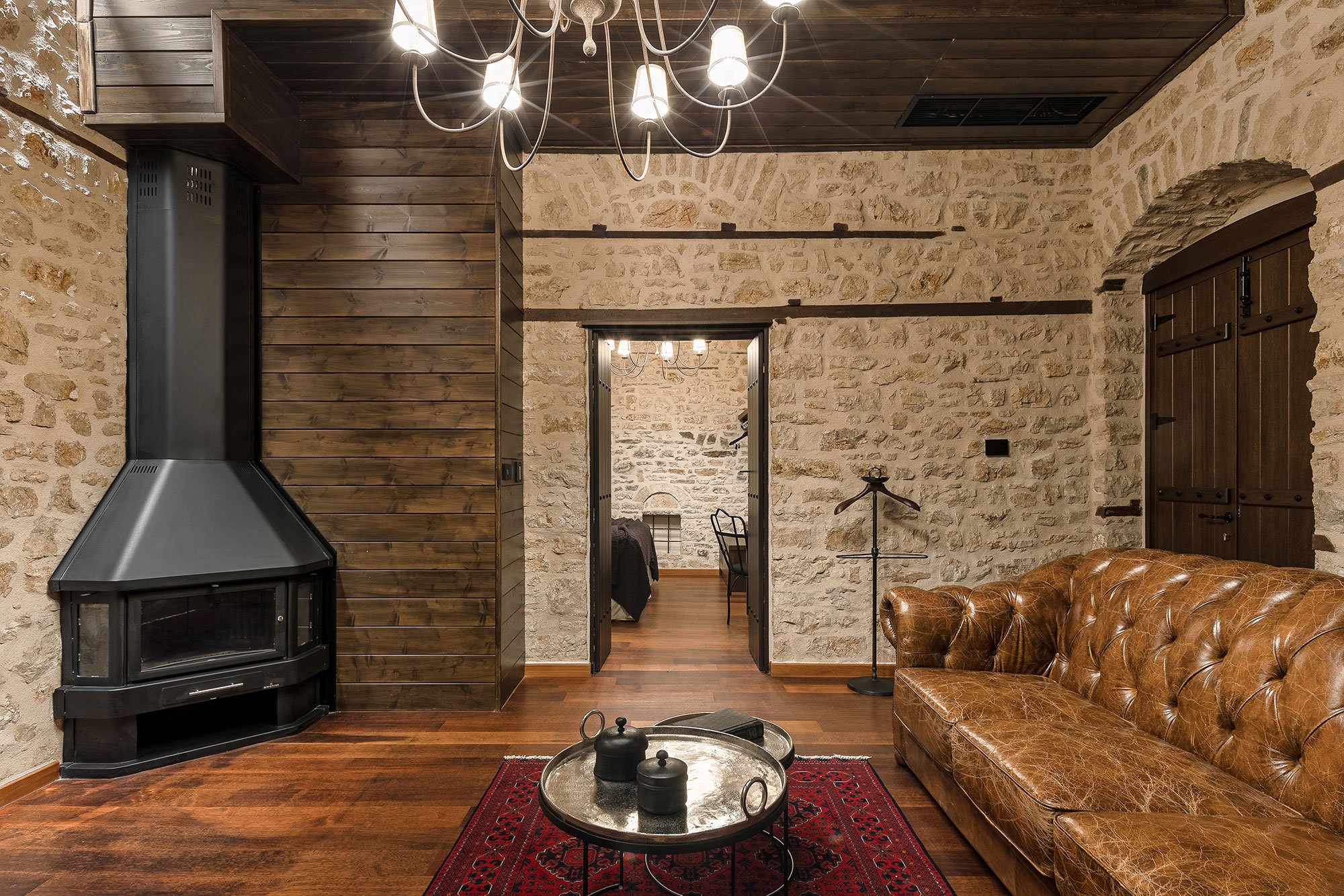 Σουίτα 40 τ.μ. με ξεχωριστό υπνοδωμάτιο, καθιστικό και τζάκι — ιδανική για άνετη και ζεστή διαμονή.